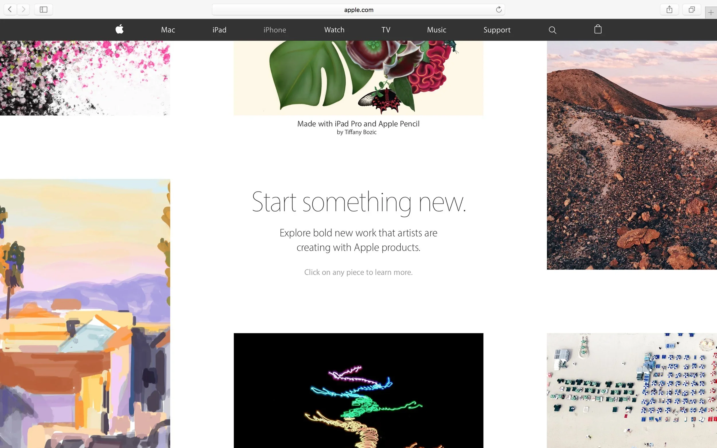 Launched on New Year's Day, Start Something New was a global integrated campaign showcasing how artists worldwide were pushing the boundaries of what Apple products are capable of. For this campaign, my role was to curate the roster of artists and brief them to create something new with an Apple device that resonates with their artistic output. This was a highly curatorial effort that pulled on my experience as a designer and art director to be able to recognize and elevate talent and have an eye for curating unseen visuals.